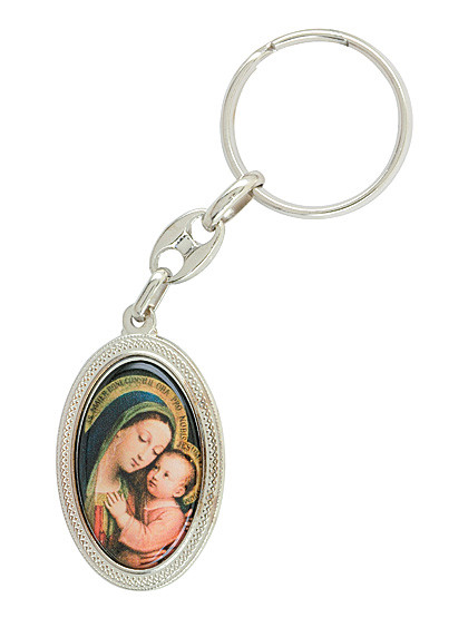 Der „Maria vom guten Rat“-Schlüsselanhänger aus Metall, möchte Sie auf all Ihren Wegen begleiten. 9 cm.