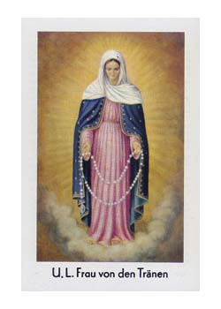 Unsere Liebe Frau von den Tränen-Gebetszettel, Preis für 10 Stück, ideal als Einlage ins Gebetbuch und zum Weiterschenken