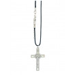 Das schutzbringende Benedikt-Kreuz aus Metall ist 5 cm groß, wurde weiß hinterlegt und wird mit Kordel und Gliederverschluss, in der Länge von 45 cm geliefert.