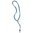 Blauer Rosenkranz mit seinem Bildnis auf dem Zwischenstück, 5 x 10 Holzperlen in Zylinderform, handgeknüpft.