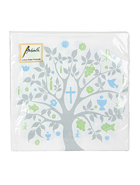 Das frühlingshaft gehaltene Baummotiv dieser Papierservietten hält in seinem Laub zahlreiche christliche Symbole versteckt: der Fisch, das Christusmonogramm, Kelch mit Hostie, Kerzen, Weintraube und Taube, nicht nur für die Erstkommunionsfeier geeignet! 20 Stück. - Kundenmeinung