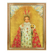 Das anmutige Prager Jesuskind-Bild ist von einem hochwertigen Holzrahmen umrahmt und hinter Glas, 23 x 28 cm.