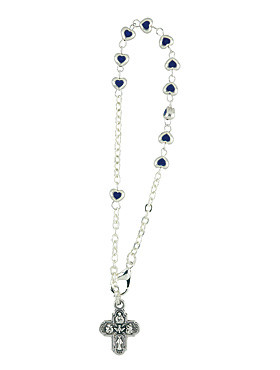 Für Kinder wie Erwachsene ist dieses Armband durchaus ansprechend: Es ist ein zehnperliger Rosenkranz, dessen Perlen in Herzform mit Farbeinguss gestaltet sind. Durch die Schließe eignet er sich nicht nur als Armband sondern auch für den Rückspiegel im Auto. - Kundenmeinung