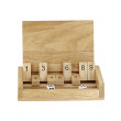 Das spannende Würfelspiel aus Holz ist mittlerweile schon ein Klassiker für Klein und Groß! Entsprechend der gewürfelten Augenzahlen werden zwei Klappen oder eine Klappe mit der Augensumme umgeklappt. Wer nicht mehr „Klappen“ kann hat verloren! Lustiges Gesellschaftsspiel für die ganze Familie – ideal für schöne Abende im Kreise seiner Liebsten! Aus Holz, 25 x 17 cm, wird mit zwei Würfeln geliefert. - Kundenmeinung