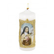 Heilige Therese von Lisieux-Kerze, 6 x 16 cm, reinweiß, im barocken, goldfarbenen Wachsrahmen, aus bestem Qualitätswachs, besonders lange Brenndauer, Handarbeit.