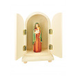Zweiflügeliger Hausaltar aus Holz mit wunderschöne Marienstatue aus gebrannten Ton, die liebevoll das Jesukind auf den Armen trägt. Geschlossen: 19 x 12 cm, alles Handarbeit