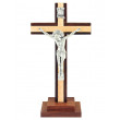 Stehkreuz aus zweifärbigen Holz mit fein gestaltetem, massivem Korpus. Größe ca. 19 x 10 cm.