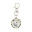 Karabineranhänger mit dem hl. Hubertus. Auf beiden Seiten des Anhängers mit 3 cm Durchmesser sind reliefartig Szenen der Legende des Hl. Hubertus zu sehen.