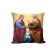 Dieser Zierkissen-Bezug zeigt uns die Aufnahme und die Krönung Mariens im Himmel! Mit verdecktem Reißverschluss, in edler Leinenoptik, waschbar bei 30 Grad, 45 x 45 cm.