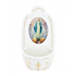 Ein Marien-Weihwasserbehälter aus glasiertem Porzellan. Ein klassisches Motiv, Maria stehend auf dem Erdball, seit Jahrhunderten beliebt. Mit religiösen Motiven und kleinen Goldpunkten verziert passt er in jede Wohnung. Befüllen Sie ihn mit unserem „Lourdes-Weihwasser“ Bestell-Nr. LW-1. Ein besonderes Geschenk für jeden Marienverehrer! Größe 13 x 7,5 cm. - Kundenmeinung