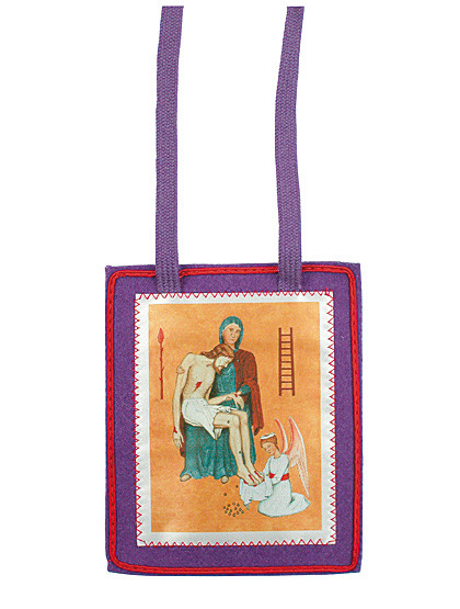 Violettes Skapulier des Segens von Marie-Julie Jahenny. Sehr aufwendig gearbeitet – echte Näharbeit von Hand nach den Visionen der Stigmatisierten! 6 x 8 cm, Bandlänge: 58 cm. - Kundenmeinung