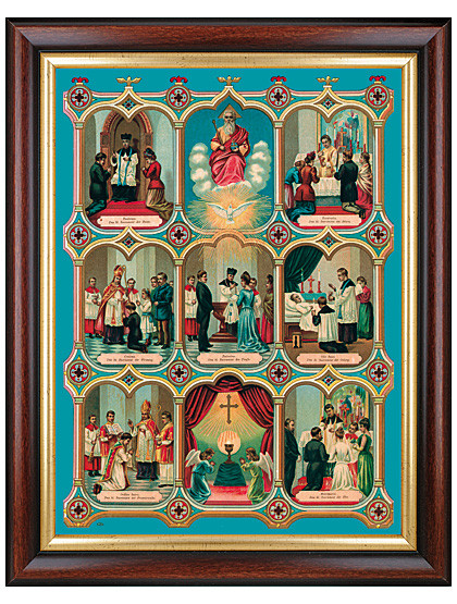 Die 7 Heiligen Sakramente-Bild, 37 x 47 cm, in Echtholzrahmen mit Goldkante.