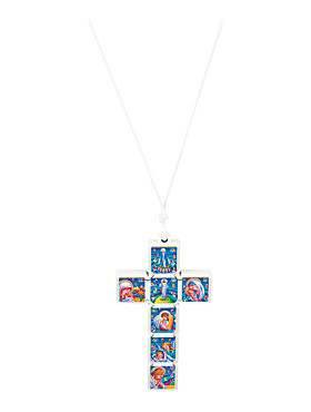 Vom weiß lackierten Grund dieses Holzkreuzes heben sich die bunt gestalteten Bildfelder mit Szenen aus dem Leben Jesu besonders gut ab. Dieses Kreuz trägt man zur Erstkommunionsfeier und ist eine Erinnerung für das ganze Leben daran. Mit Stoffkordel, 7,5 x 4,5 cm. - Kundenmeinung