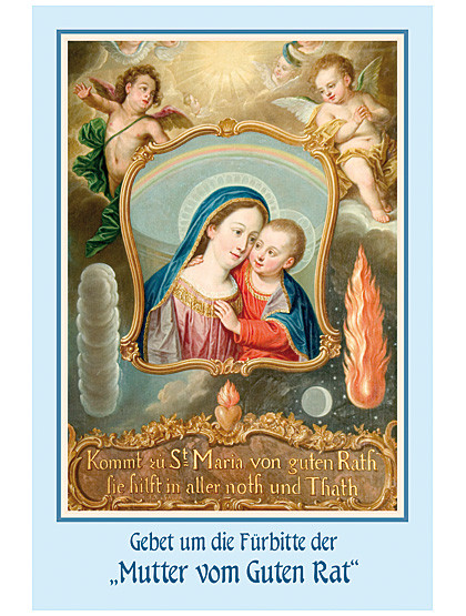 Gebet um die Fürbitte der „Mutter vom Guten Rat“ – wenden wir uns voll Vertrauen an die Gottesmutter. Ideal als Einlage ins Gebetbuch und zum Weiterschenken. Preis für 10 Stück Gebetszettel.