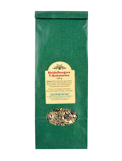 Heidelbergers 7-Kräutertee, 100 g, mit Wermut, Schafgarbe, Wacholder, Fenchel, Anis, Kümmel und Bibernelle