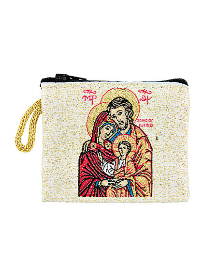 Dieses 8,5 x 7 cm große Etui aus golddurchwirktem Brokatstoff, mit Zippverschluss und Schlaufe zeigt auf beiden Seiten die hl. Familie mit dem Jesuskind. Dieses seltene und handgearbeitete Rosenkranztäschchen eignet sich nicht nur für Rosenkränze, Medaillen u. v. m. und ist so Ihr ständiger Begleiter. - Kundenmeinung