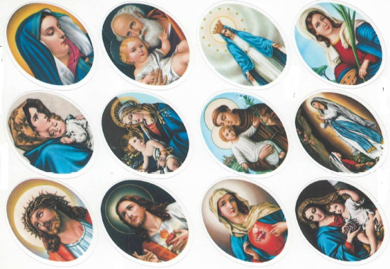 Aufkleber mit Motiven unterschiedlicher Heiliger, 12 Stk.