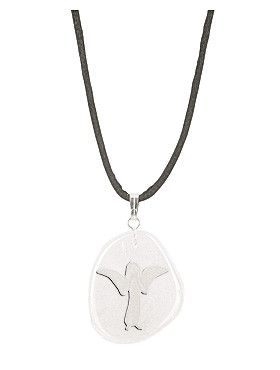 Aus reinem Bergkristall ist dieser Anhänger mit Engel-Gravur. Er soll Klarheit schenken, aber vor allem dabei helfen, den Schutzengel immer in Geist und Herz zu tragen. ø ca. 2,5 cm, mit Halskordel. - Kundenmeinung