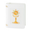 Rosenkranzdöschen in Buchform mit goldenem IHS-Aufdruck aus Kunststoff, 4,5 x 6 cm.