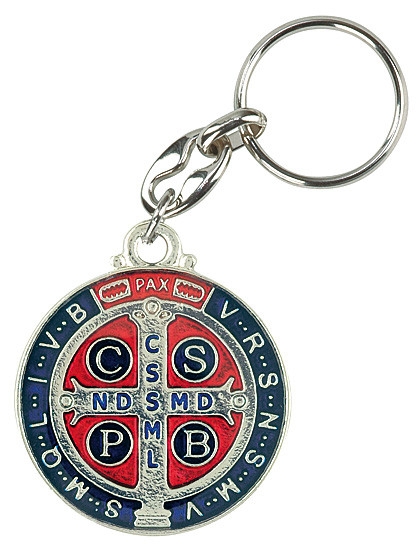 Schutz und Segen für alle, die viel unterwegs sind: Praktischer und stabiler bunter Schlüsselanhänger aus Metall mit der Benedikt-Medaille. Sie beinhaltet ein klares Bekenntnis zum Heiligen Kreuz und eine klare Absage an das Böse. „Der Liebe zu Christus nichts vorziehen“ ist das Geheimrezept des Patrons von Europa, den heiligen Benedikt. Ø 5 cm.