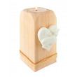 Dieser schlichte, aus Holz gefertigte Teelichthalter passt zu jeder Einrichtung. Auf der Vorderseite ist das Lamm Gottes abgebildet. 12 cm.