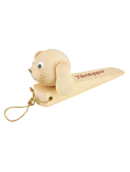 Praktischer Türstopper aus Buchenholz mit süßem Hundekopf. So bleiben Türen offen, auch wenn es zieht. Länge: 20 cm.